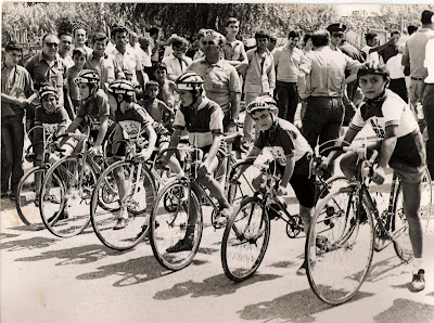 momentos antes de la salida, al fondo Loren, a mi lado Josep Coma y en primer término Jordi Roca y detrás de pie, el director técnico del equipo Fernándo Agramúnt.(foto palacio-alonso)