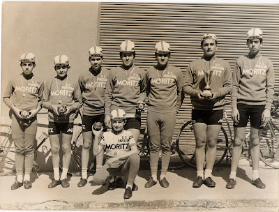 foto del equipo con todos los trofeos conseguidos, de derecha a izquierda: R. Marco, J.G. Alonso, F. Rodriguez, F. Agramunt, J. Latorre, E. Bertolín, S. Gálvez y yo agachado, los que llevamos trofeo en la mano, es porque ganamos en nuestras respectivas categorias.