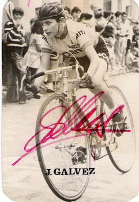 aquí en plena carrera intentándome escapar seguido de A. Moreno, esta foto también tiene algunos autógrafos, entre otros el de J. M Fuente, Parenteau, Mollet, Martellozzo, Delisle, Thevenet y Guitard.