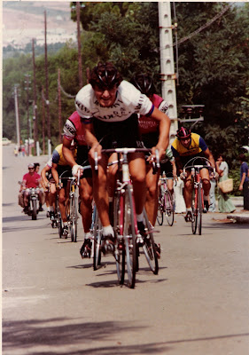 aquí me podeis ver en cabeza de carrera seguido de Josep Lluis Laguía y Pere Muñoz a la derecha de la foto con el maillot amarillo y azul.